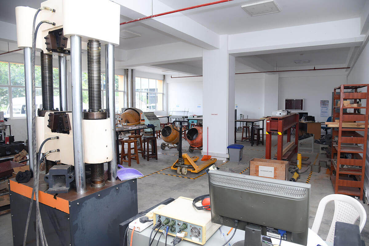 Universal Testing Machine, Beam Tester, Compression Testing Machine, Concrete mixers, sieve analysis test apparatus, concrete casting moulds, Slump Cone testing apparatus, AIV apparatus, Core drill Machine, Drying Oven