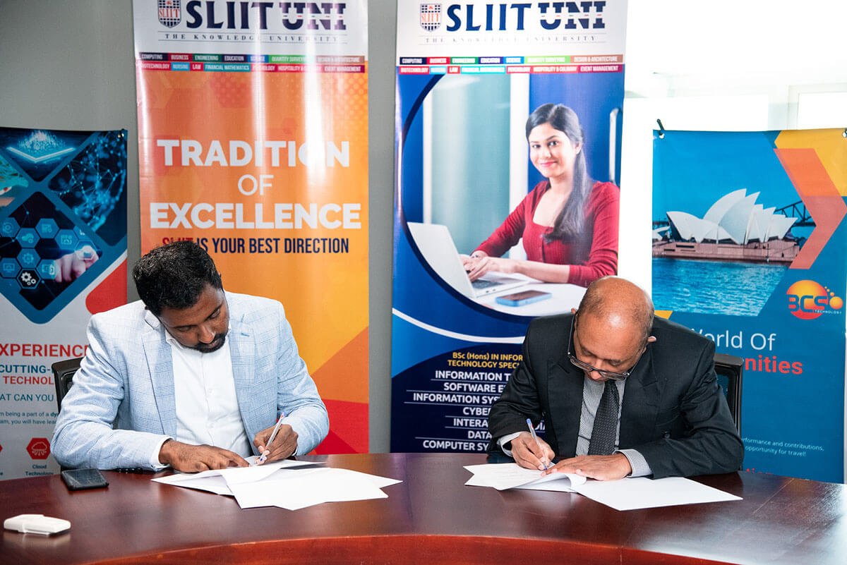 Dr. Nuwan Kodagoda, the Dean of the Faculty of Computing, signed the MoU on behalf of SLIIT, while Mr. Sanjeewa Alwis, the CEO of BCS Technology International, signed on their behalf.